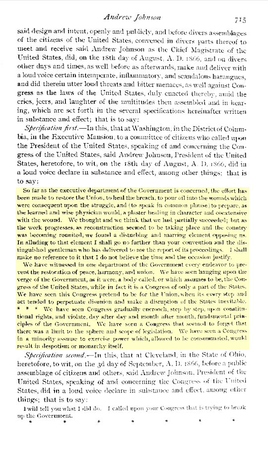day of August 1866, as quoted Additional Articles of Impeachment